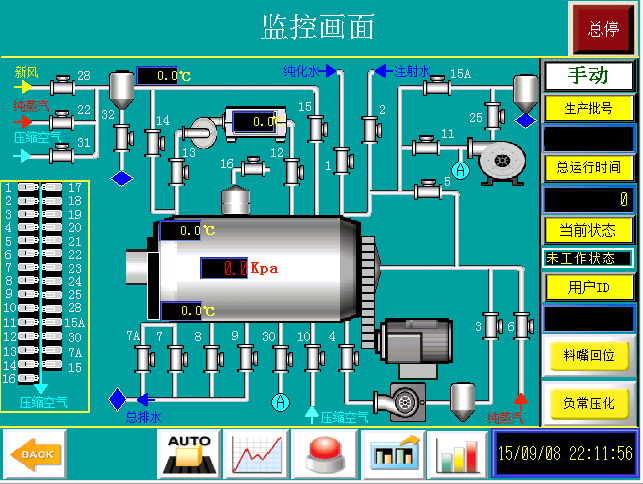 采用西門子控制系統(tǒng),對生產(chǎn)工藝進行實時監(jiān)控;實現(xiàn)在線清洗與在線滅菌及干燥等全自動控制,監(jiān)控對象有箱體溫度、壓力、流量、速度、PH等記錄和控制。據(jù)有全自動、半自動、手動根據(jù)用戶操作的選擇,完全實現(xiàn)無需人工操作與檢測。對數(shù)據(jù)有實時查詢、歷史查詢、實時報警、歷史報警等做到數(shù)據(jù)歸檔及可追朔。